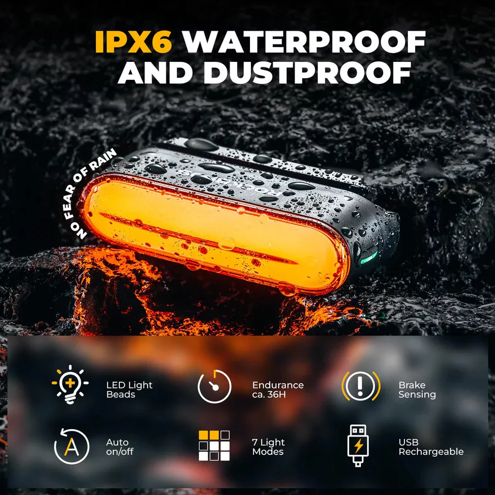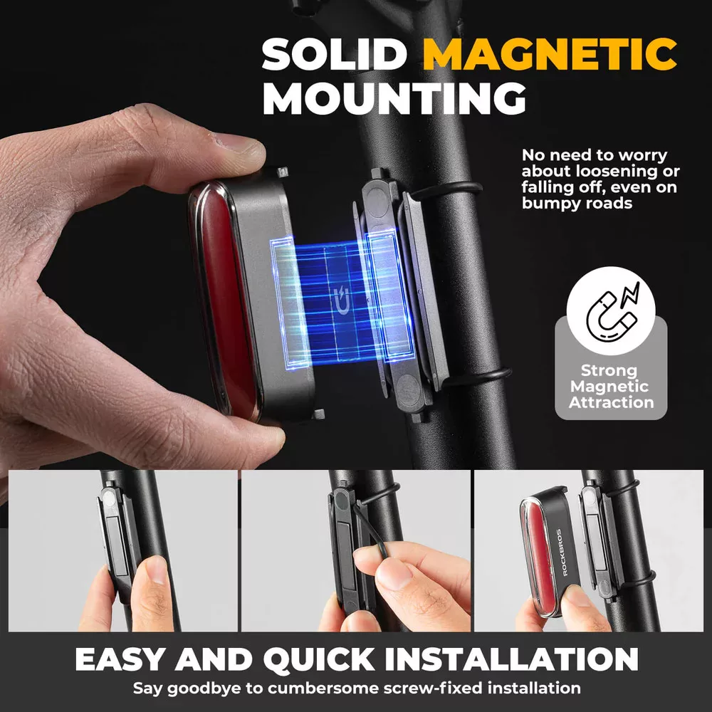 ROCKBROS 24120009001 zadnja luč za kolo s senzorjem zaviranja, magnetnim pritrjevanjem, 7 načini osvetlitve, USB polnjenje, vodoodporna IPX6