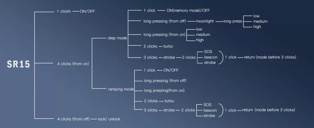 SOFIRN SR15 je zmogljiva svetilka s 4500 lumni in dosegom 510 metrov. Popolna za pohodništvo, kampiranje, nujne primere in taktično uporabo.