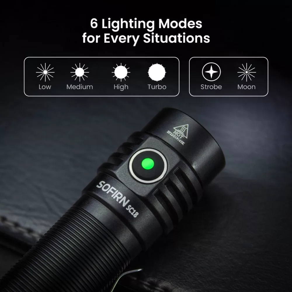 Sofirn SC18 1800lm EDC svetilka USB C za polnjenje SST40 LED 18650 Torch TIR Optics Lens Lantern z indikatorjem moči