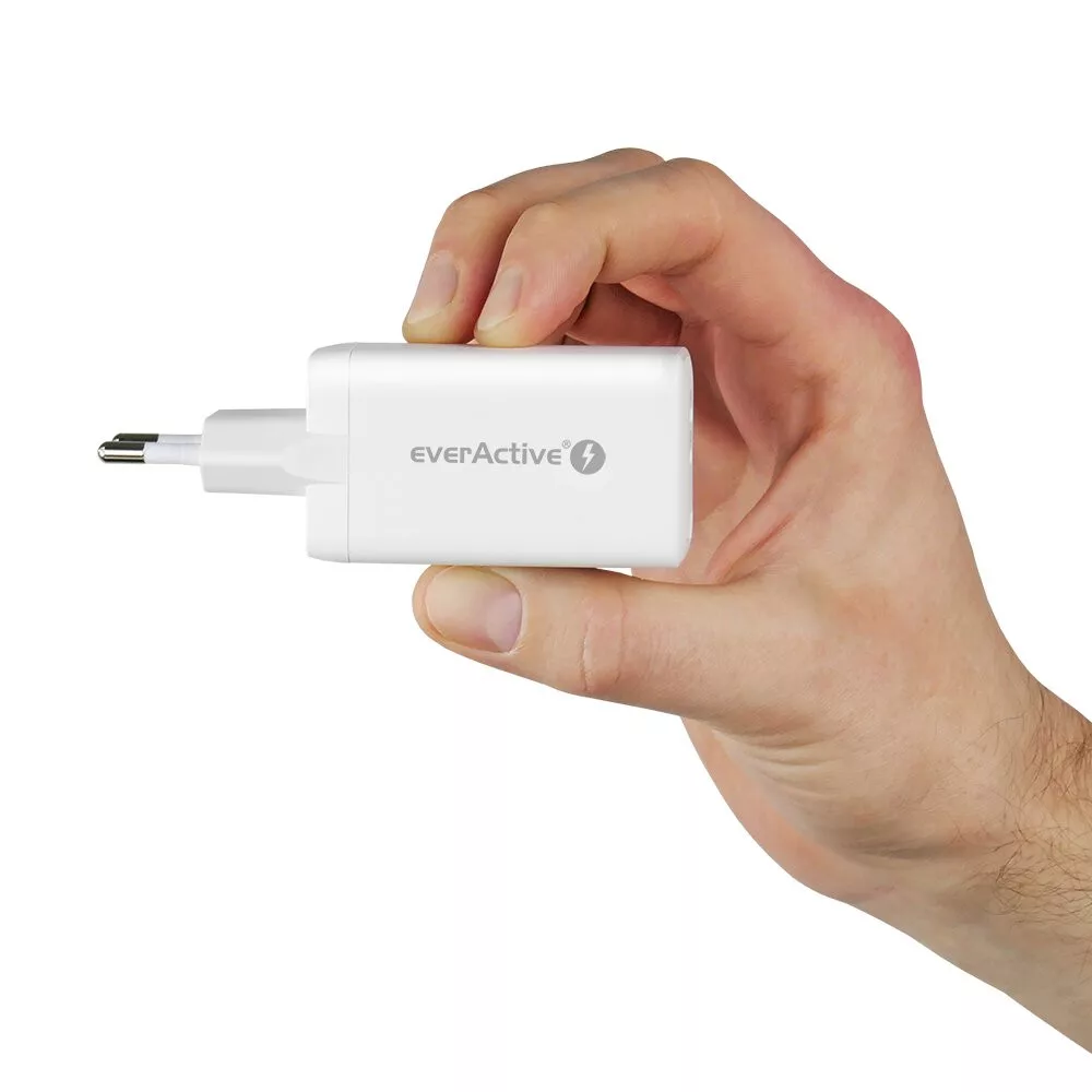 everActive GaN SC-650Q stenski polnilec z USB priključkom in 2x USB-C PD PPS QC4+ 65W